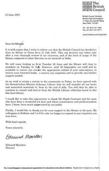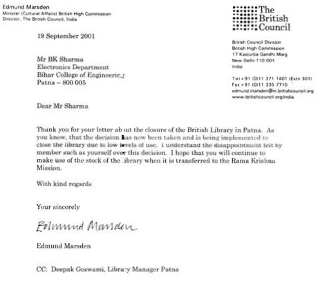 Almost at the same time Ranchi and Lucknow British libraries met with the same fate. The reason for closure as cited by Mr.Edmund Marsden, Minister (Cultural Affairs) British High Commission, and Director, The British Council, were :