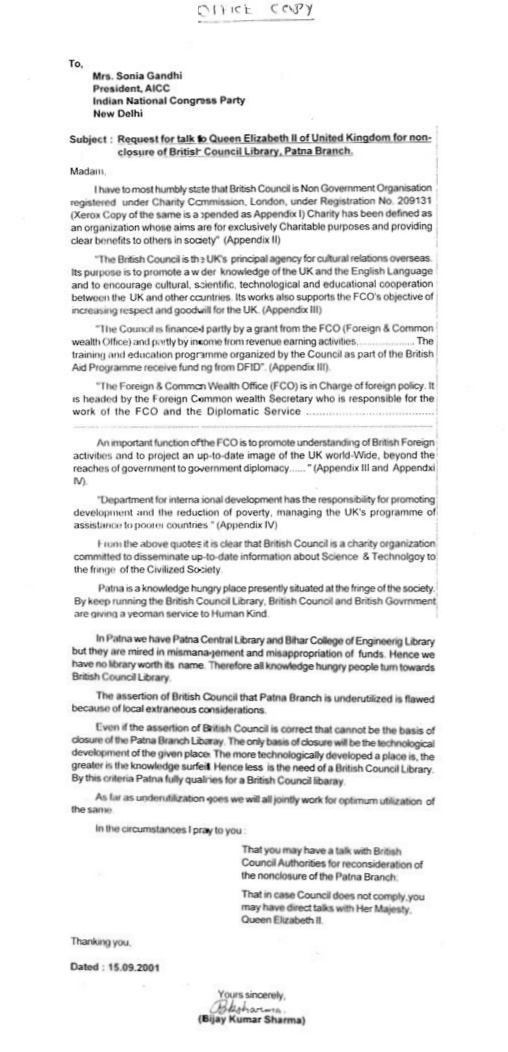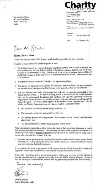 - Hence charity Commission should ask British Council to reopen British Libraries in Patna, Ranchi and Lucknow.