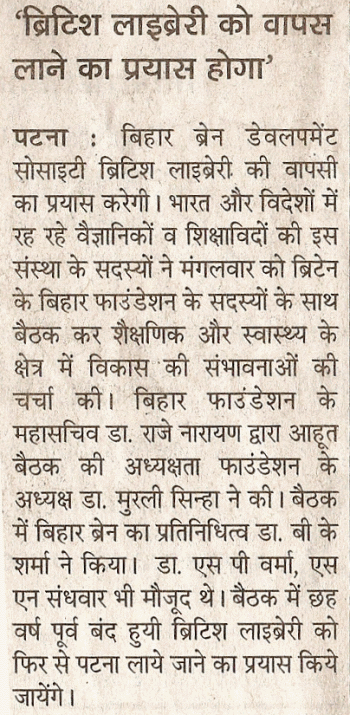 Attempts would be made to contact the British High Commission to discuss the possibility of bringing back the library again in Patna, Dr. Sharma said.