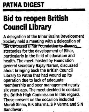 Attempts would be made to contact the British High Commission to discuss the possibility of bringing back the library again in Patna, Dr. Sharma said.