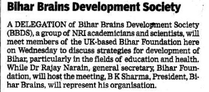 BiharBrains Joins Hands with Bihar Foundation: News on Patna Daily on Nov 8,2007